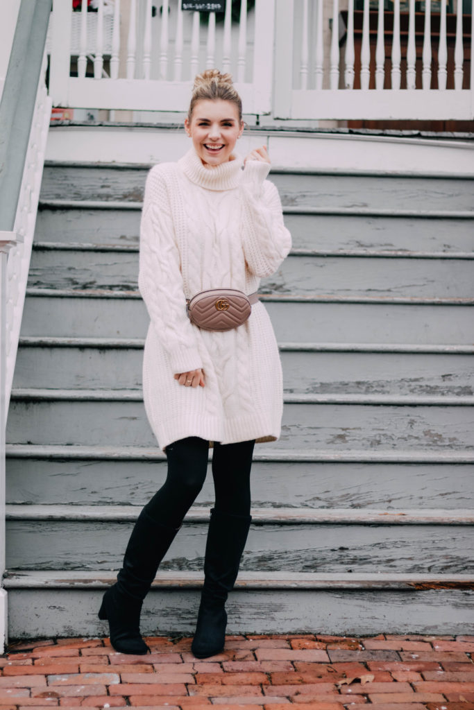I love love LOVE LOVE midi dresses. I don’t tend to wear dresses that are shorter than right above my knee – so midi dresses are perfect for me. Belt bags break up the dress so that it doesn’t look like a weird length and also helps to accentuate your waist so that your shape isn’t lost in the dress, as well. I love that you can also dress this up or down: a t-shirt midi with sneakers or a ruffled or lace midi with heels or booties.