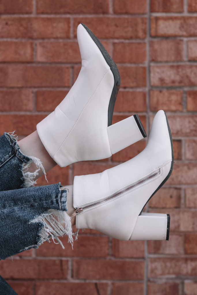 I hope you guys worked up the courage to snag a pair of these white booties (and tbh – grab these mom jeans, too) to wear this spring!! I know these are going to be on repeat for me this year.