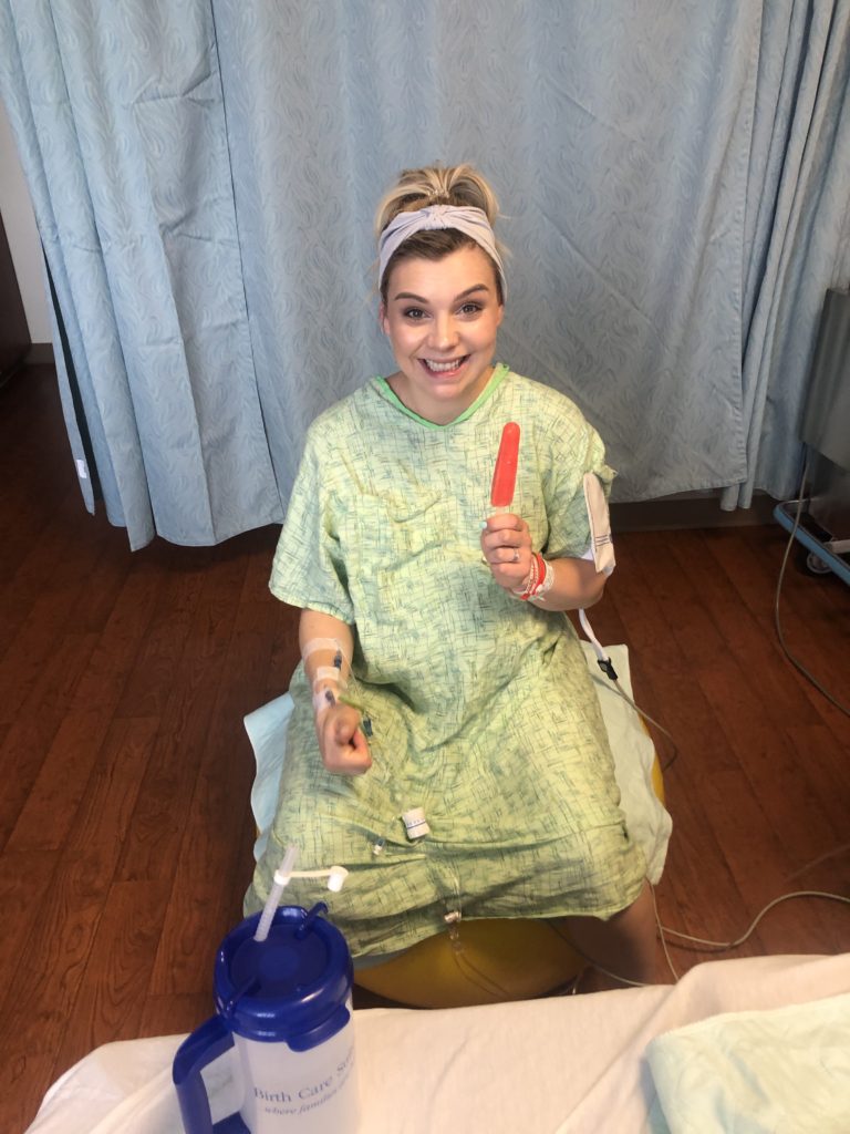 I bounced on exercise balls, I ate at least 8 popsicles (I was on a strictly clear liquid diet from this point on), I walked up and down my room, I played lots of Candy Crush and Words With Friends with Adam. We watched movies. Basically I was confined to my room with my IV and we had to pass the time as best we could! My parents came to visit around this time to chat and we all soaked in the last few hours with my baby belly and pregnancy.